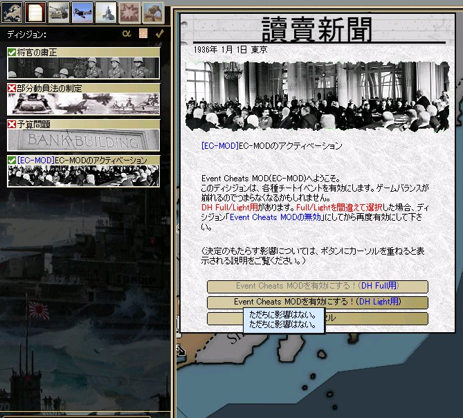 3. 不要になったらディシジョンリストから「Event Cheats MODを無効化」して下さい。